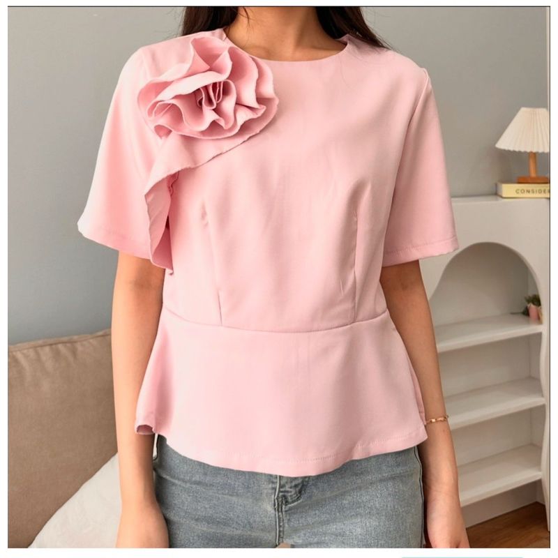 Mafia Polly Top /Flower Peplum Red Pink Rose Blouse Atasan Top Wanita