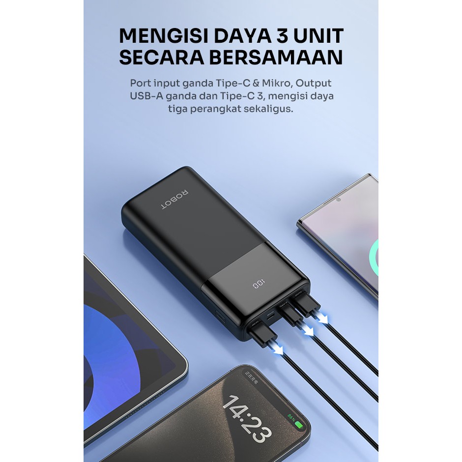 Robot Rt22S 20000Mah Two Way Fast Charging Powerbank Usb-A Usb-C Led Digital Display