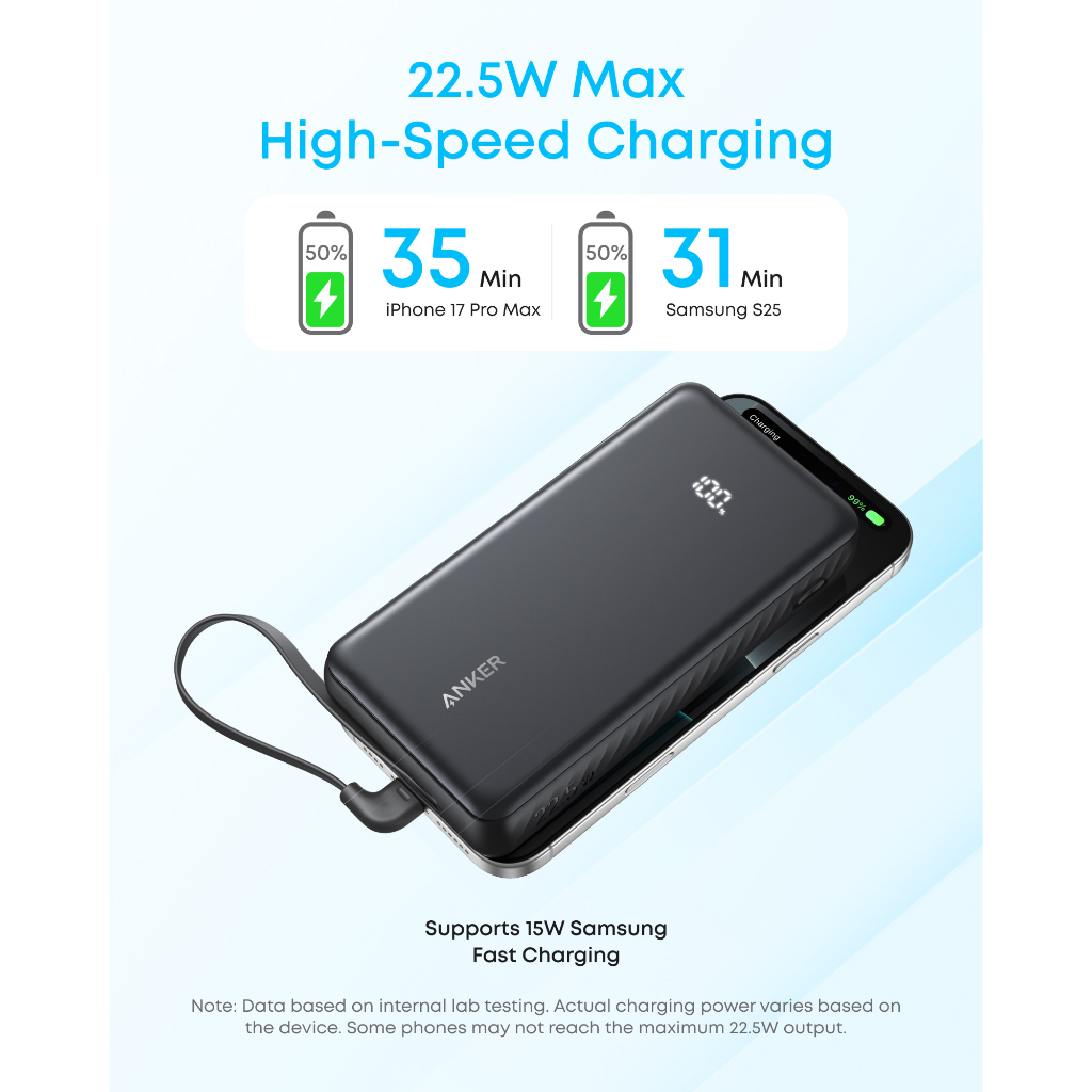 Anker Zolo Portable Power Bank 3C / Ccc 10,000Mah / 20,000Mah 3 Ports With Built-In Type-C Cable Type-A Port 22.5W Fast