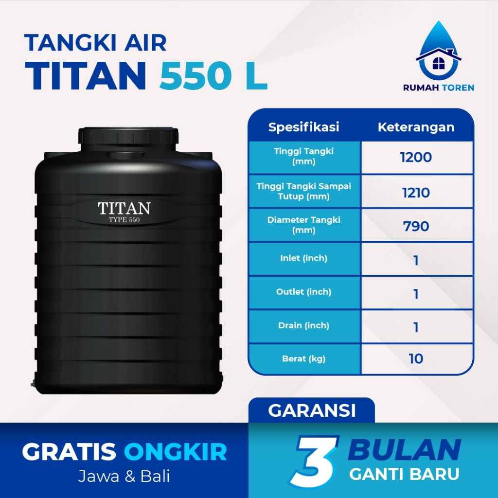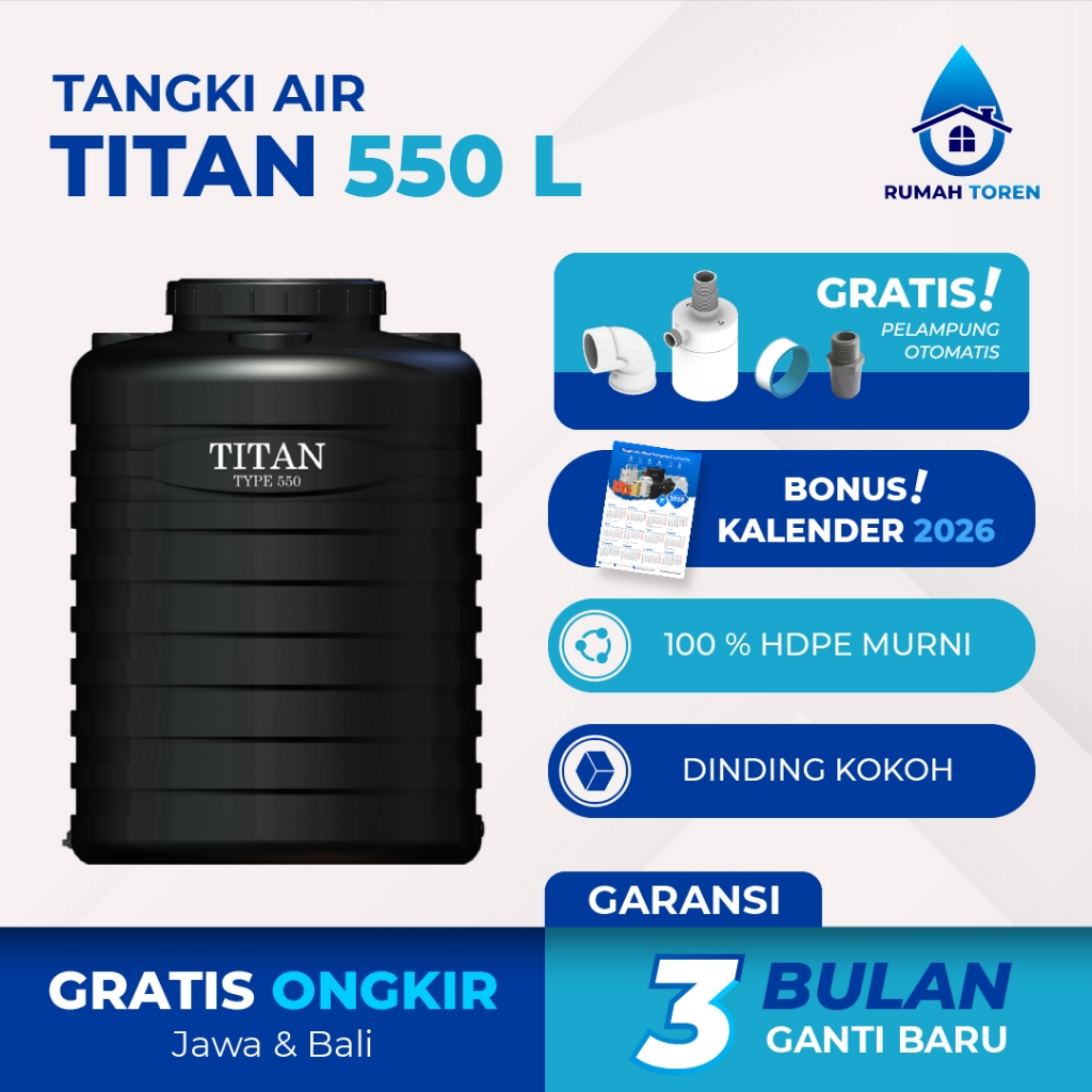Tangki Toren Tandon air Titan Blow 550 Liter Tidak Berbau Higienis | Free Ongkir