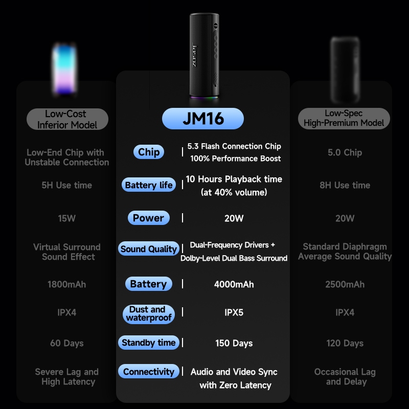 Jasoz Jm16 Wireless 20W Bluetooth Speaker Ipx5 Ultra Bass Sound Portable With Rgb Light