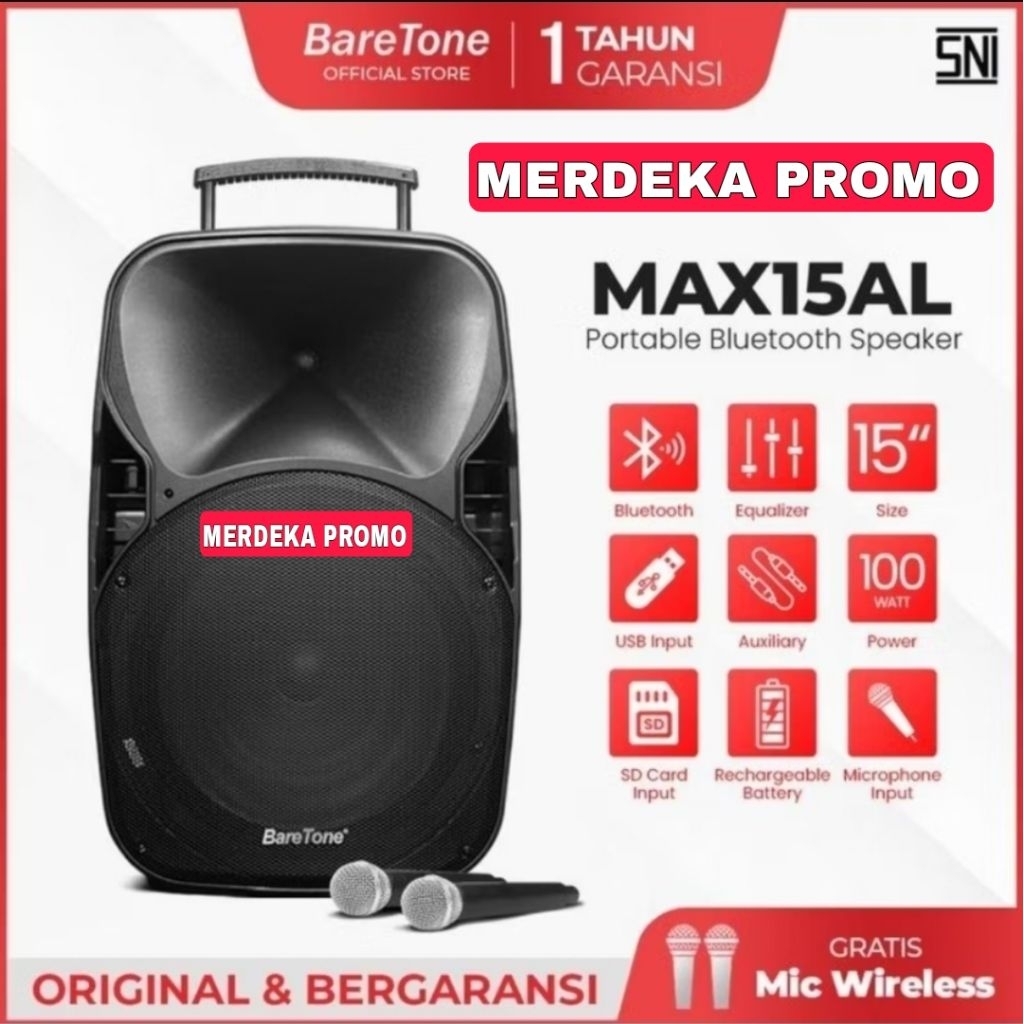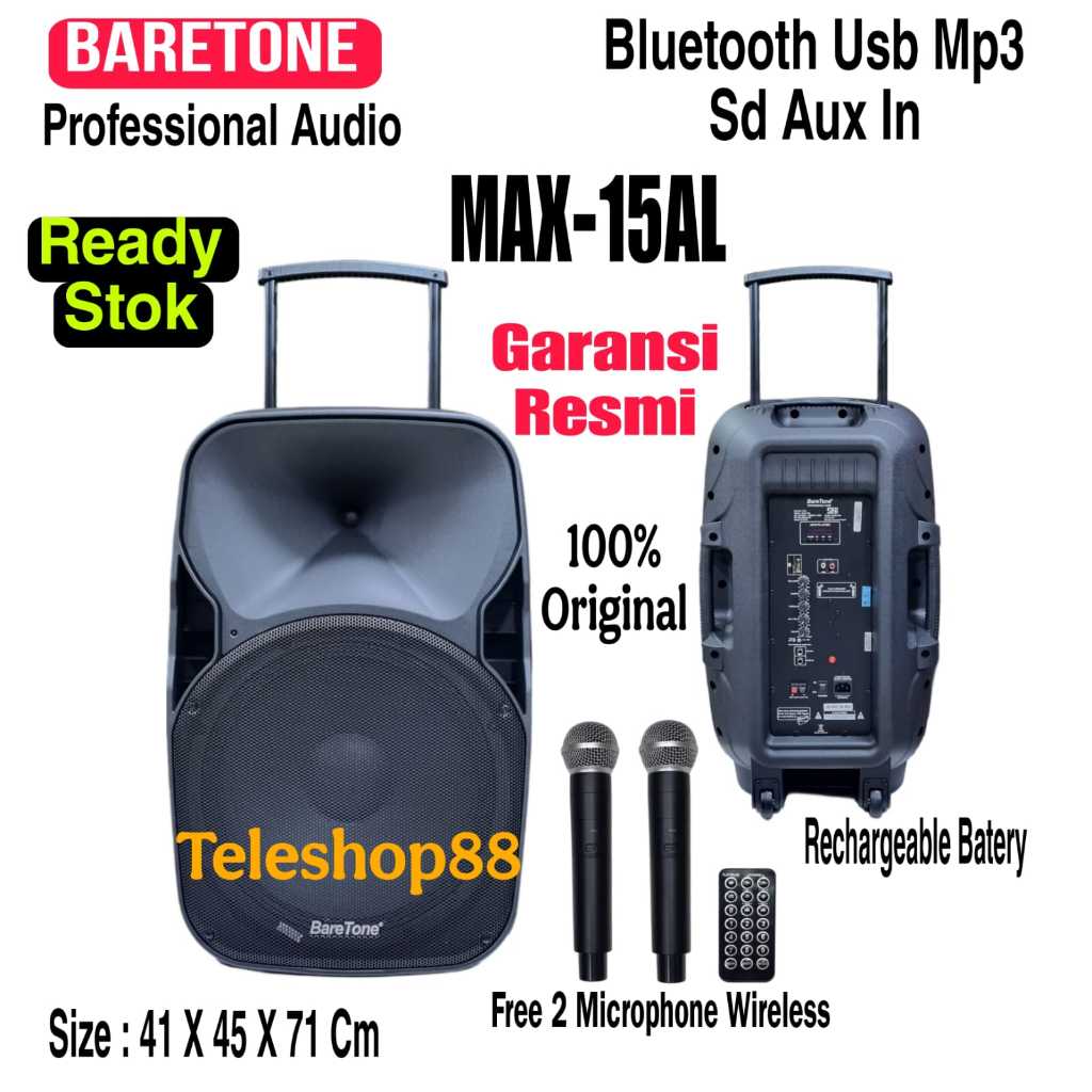 Speaker Portable 15 Inch Baretone Max15Al Usb Mp3 Bluetooth Kualitas Terbaik