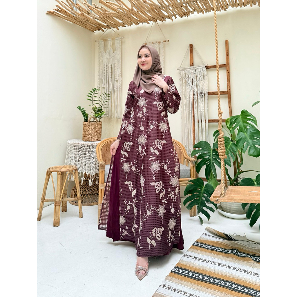 Dress Reina Organza Bordir M L Xl//Gamis Marbella Bordir//Gamis Malaysia
