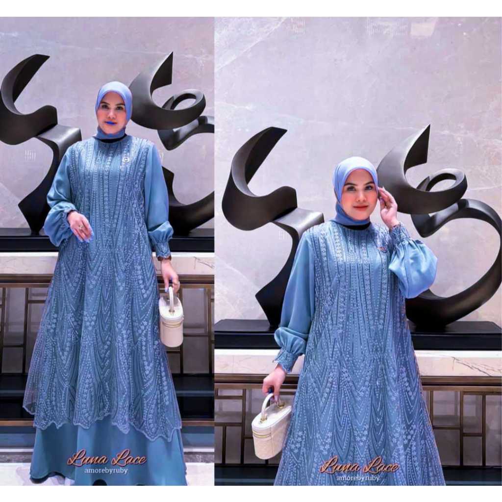Luna Lace Dress Pesta Brukat Mewah Gamis Kondangan Wanita Remaja Dewasa Ceruty Babydoll Mix Brokat