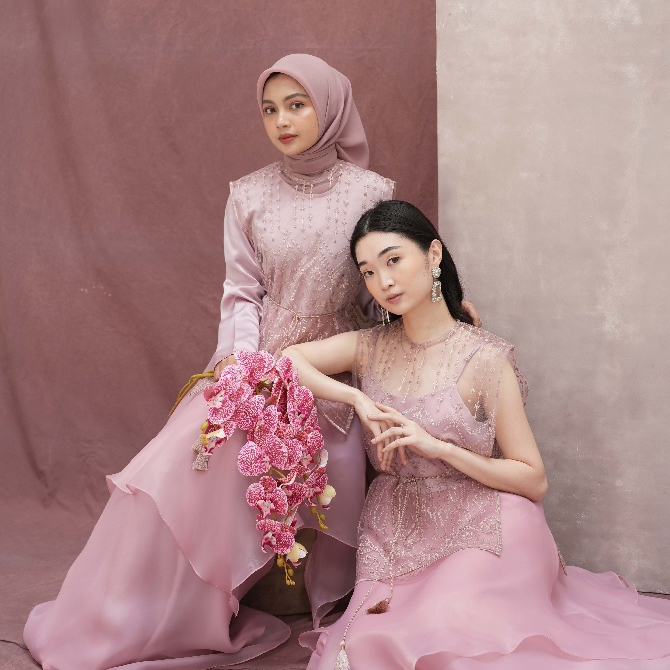 Official Croi - Alea Set Dress In Pink In Hijab & Non-Hijab // Dress Hijabers / Dress Hijab / Party Dress / Dress Gaun /