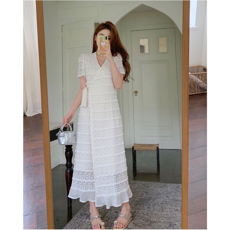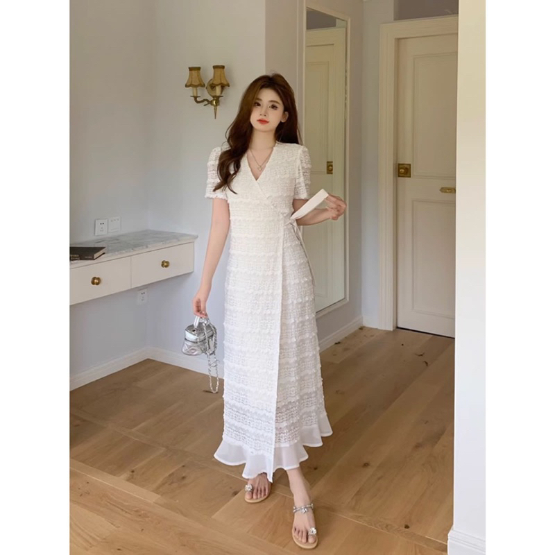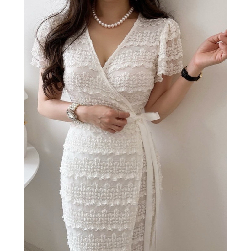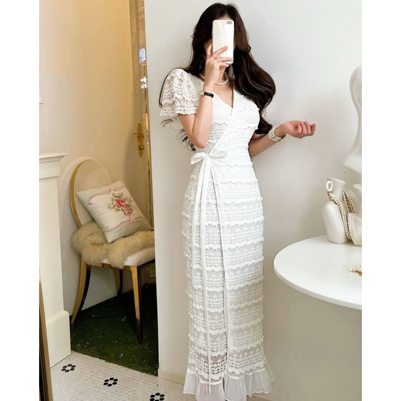 Zeca Dress Lace Party Brukat Korean Elegant Dinner Party White Black Fuchsia Blue Green Maroon