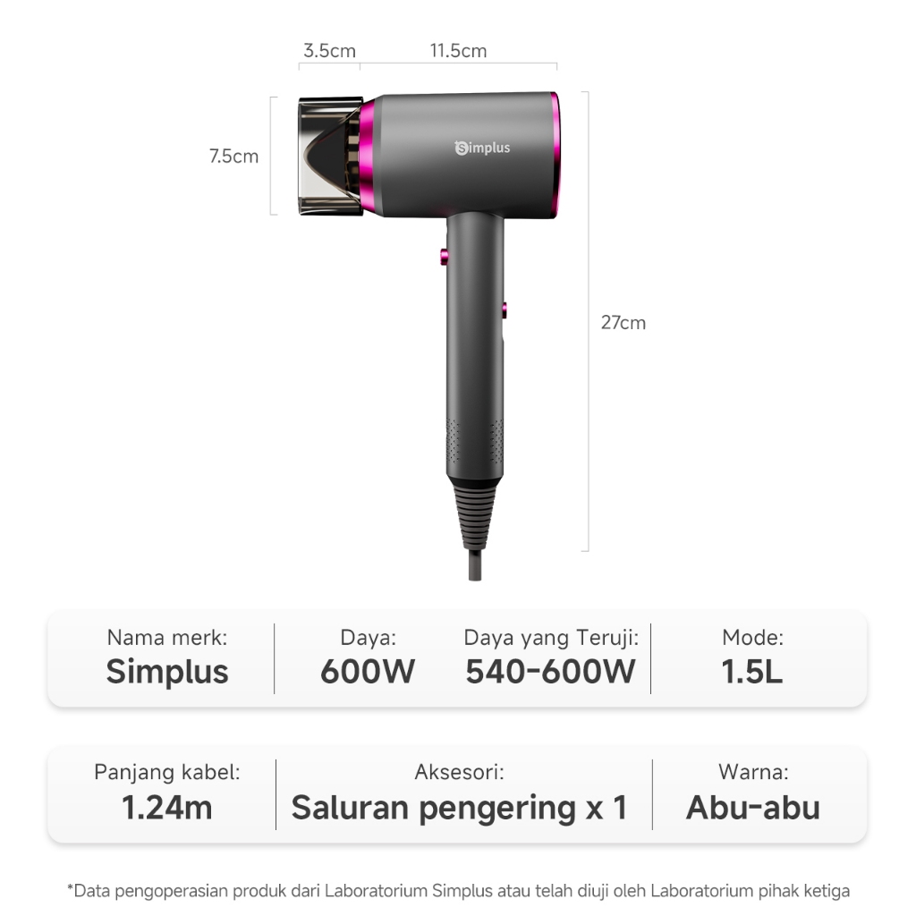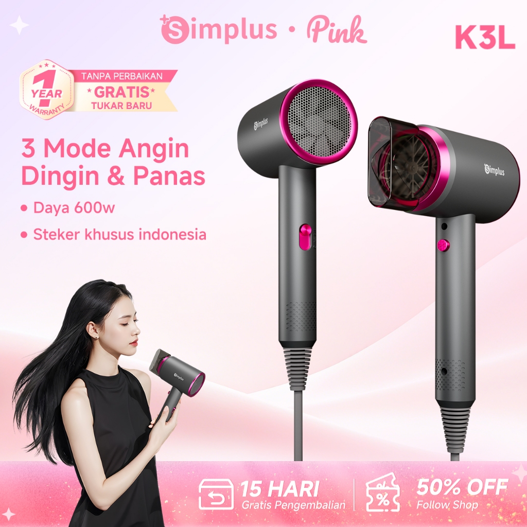 Simpluspink Mini Hair Dryer Low Watt Profesional Blower 3 Pilihan Suhu Pengering Rambut