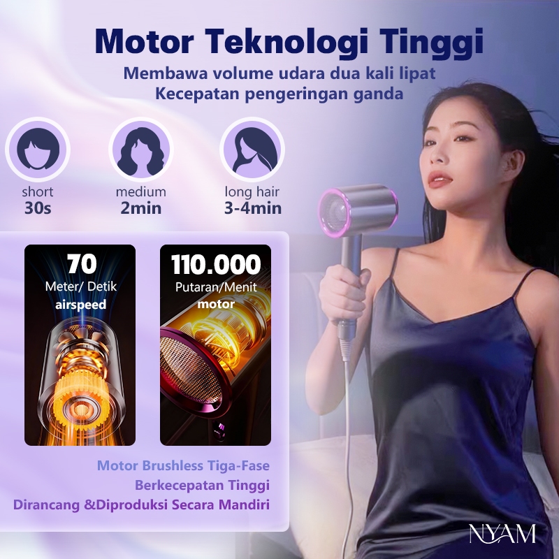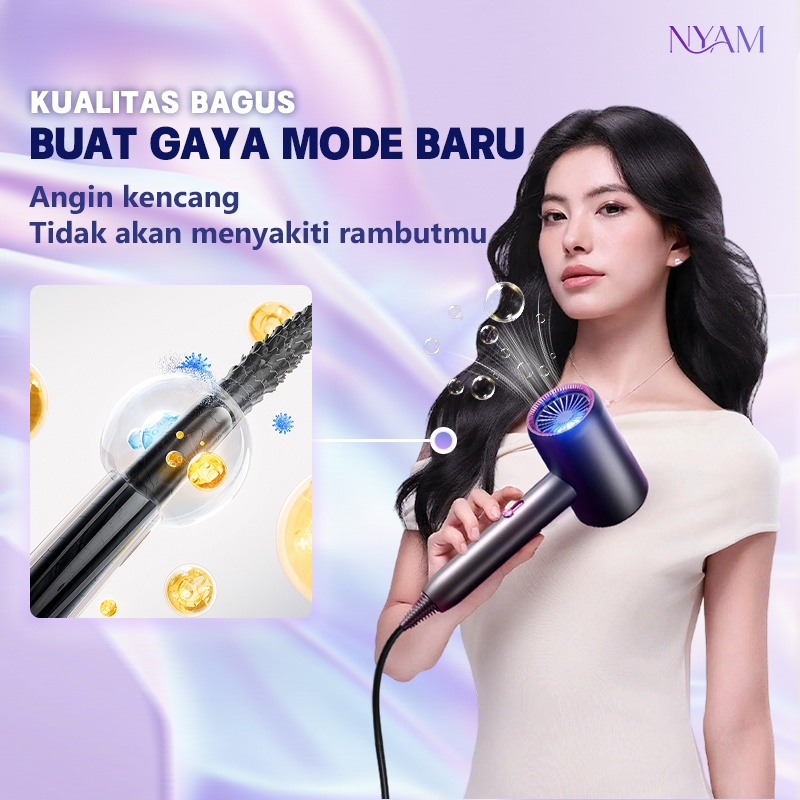 Nyam Hair Dryer: 300 Millions Of Negative Lons, Fast-Drying, Noiseless, Hot & Cold Dual Modes