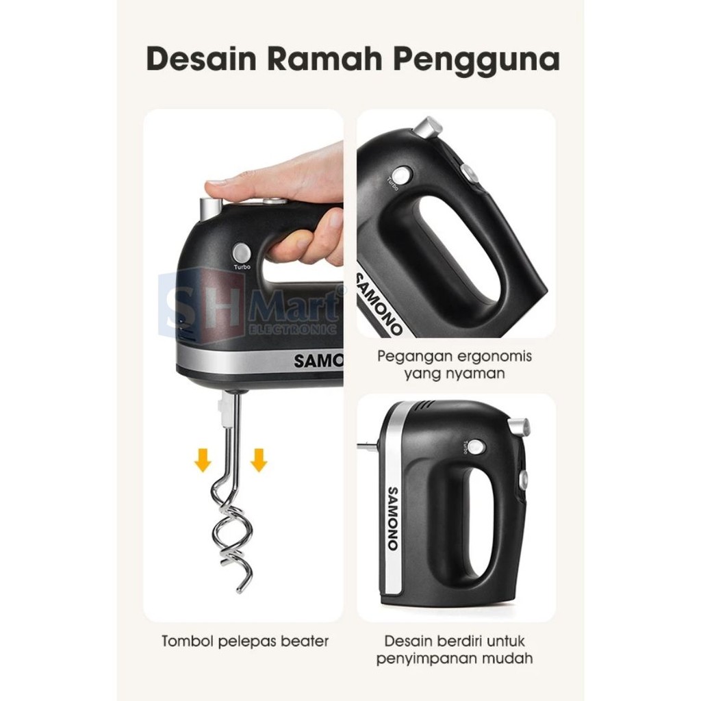 Samono Stand Mixer 2In1 Kapasitas 4 Liter Sw-Hmb300 Stainless Bowl 5 Kecepatan 300 Watt