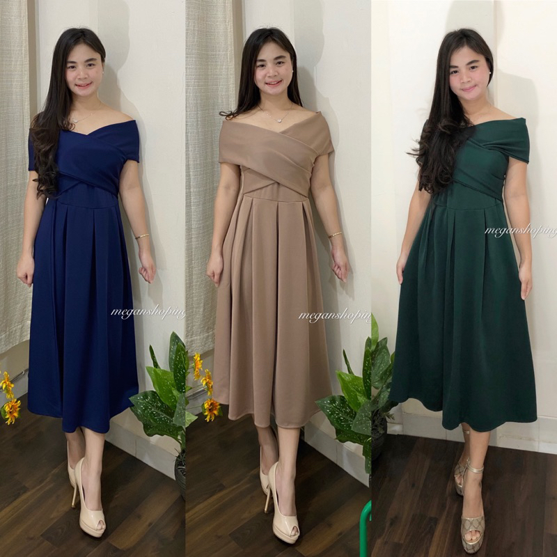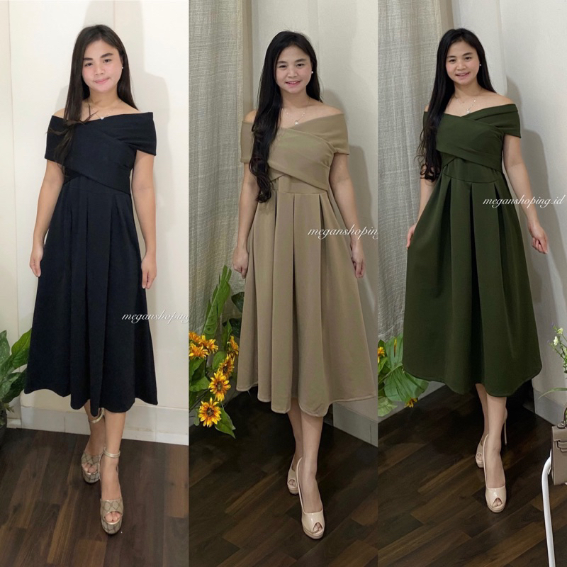 Meganshoping - Sabrina Dress Brides Maid Pesta Kondangan Pre Wedding Natal Imlek Sincia Cny Fashion Wanita Anggun Mewah