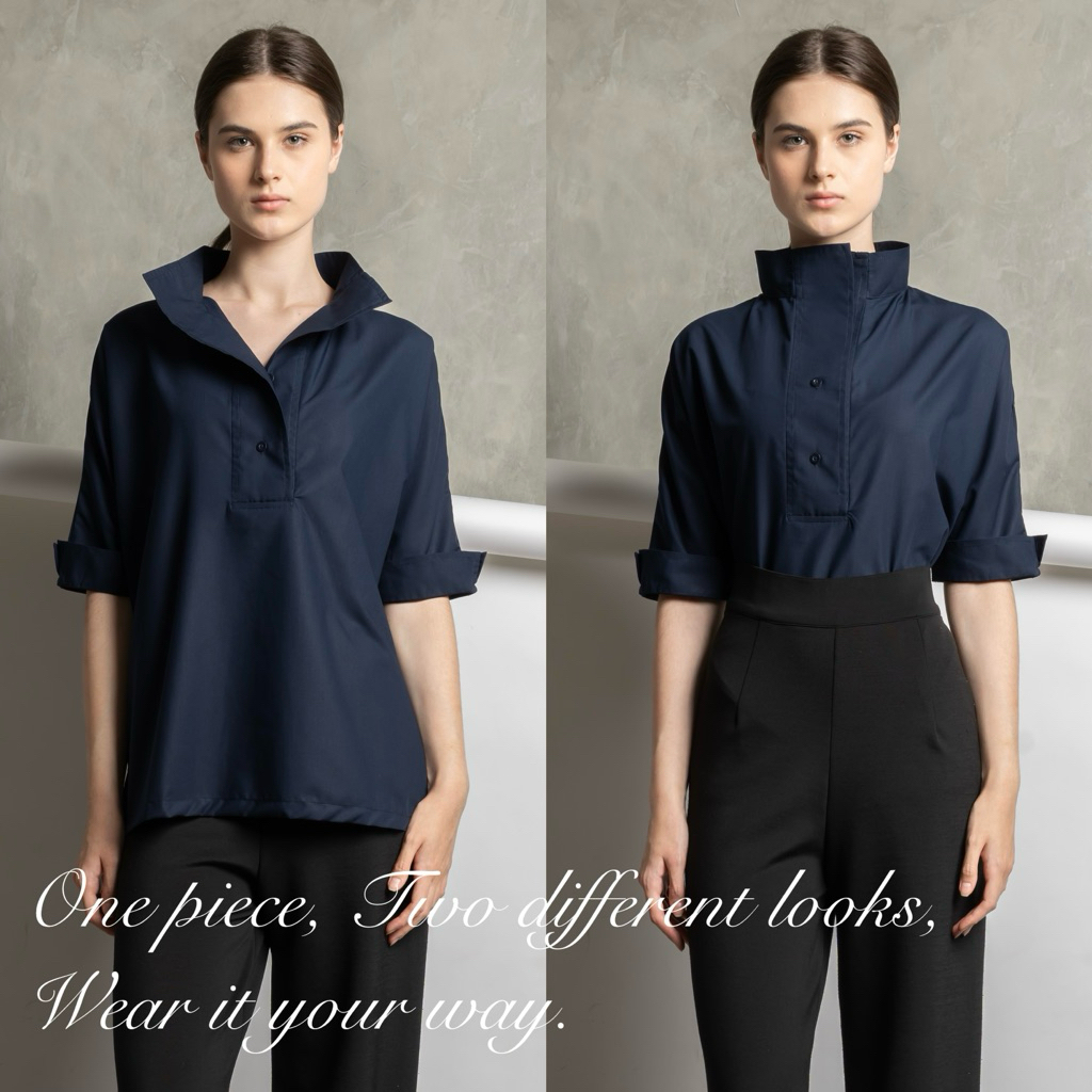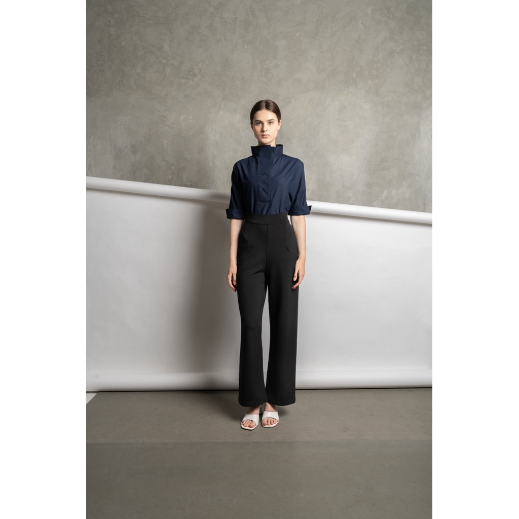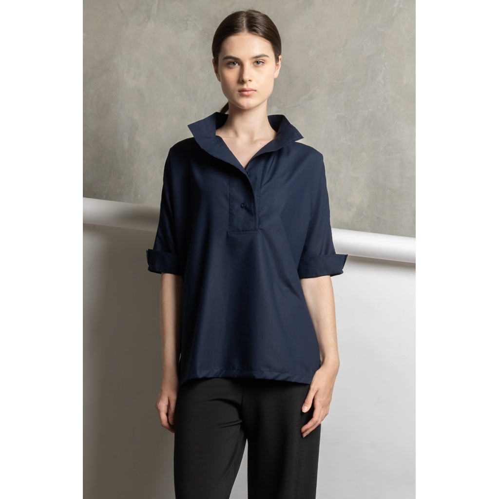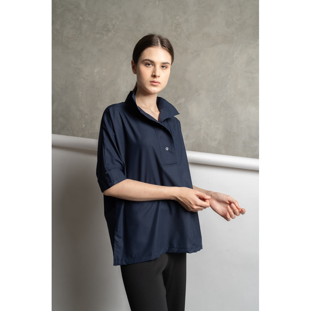 Aakar | Premium Emi Shirt In Navy | Kemeja Wanita | Kemeja Premium | Kemeja Kantor | Kemeja Lengan Pendek