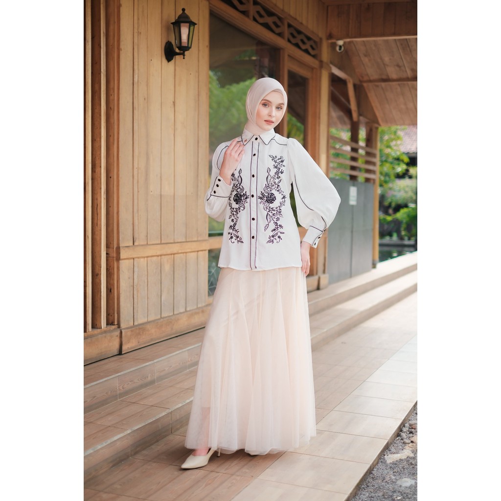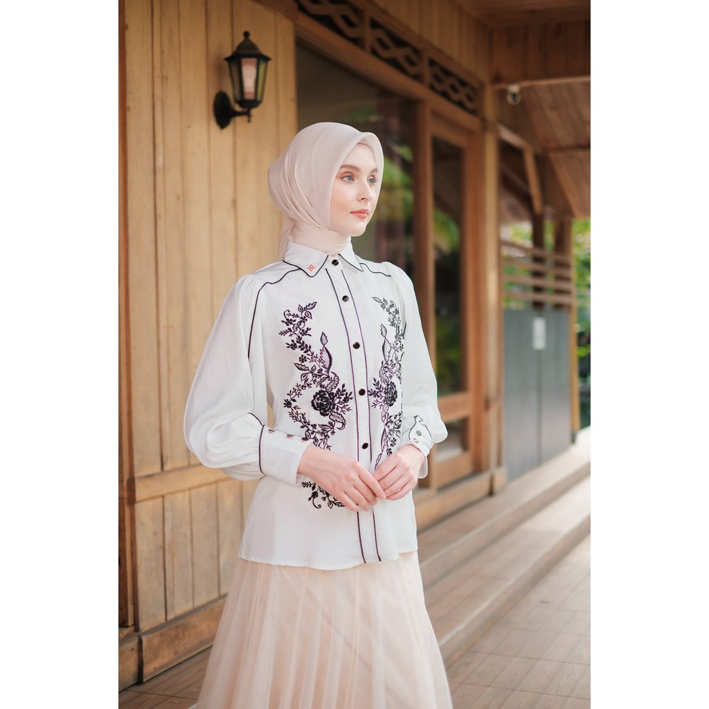 Adeola Scarf - Rose Embroidery Series Blouse - Blouse Bordir - Blouse Wanita - White