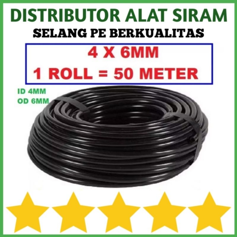 SELANG PE 4 X 6MM 1ROLL 50 METER ALAT SIRAM HOSE IRIGASI HIDROPONIK FERTIGASI SPRAYER MISTING HDPE T