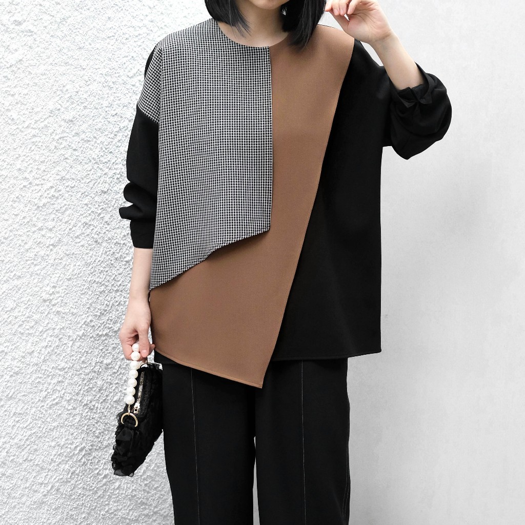 Skiia Label | Avalon Long Sleeve Top Blouse Black Brown Creme Pattern