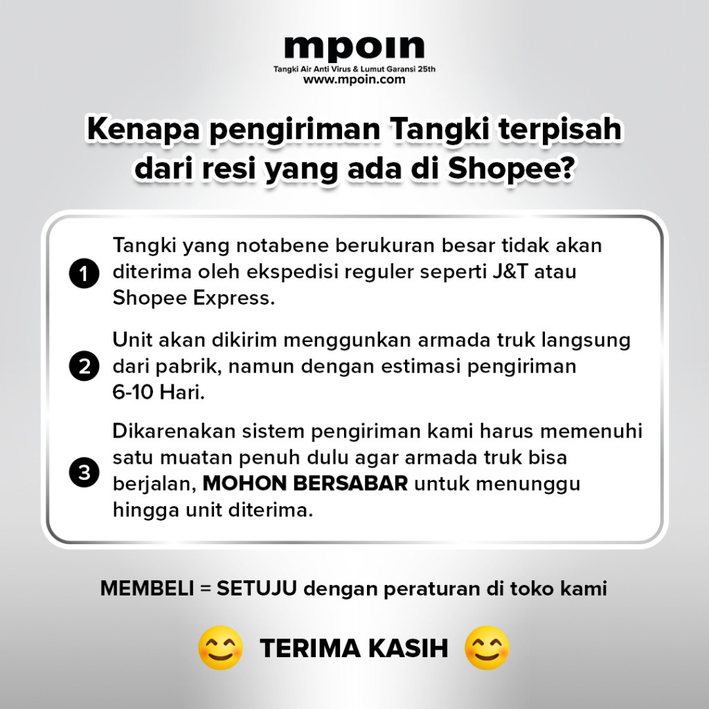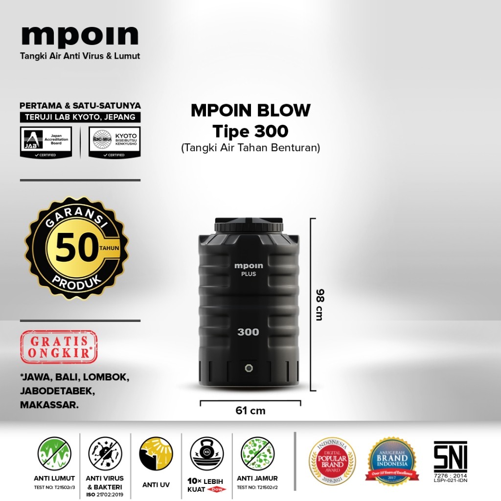 RHEMA Tandon Toren Air Reguler MPOIN BL 300 sd 1200 Liter - Garansi 50 Tahun - Anti lumut