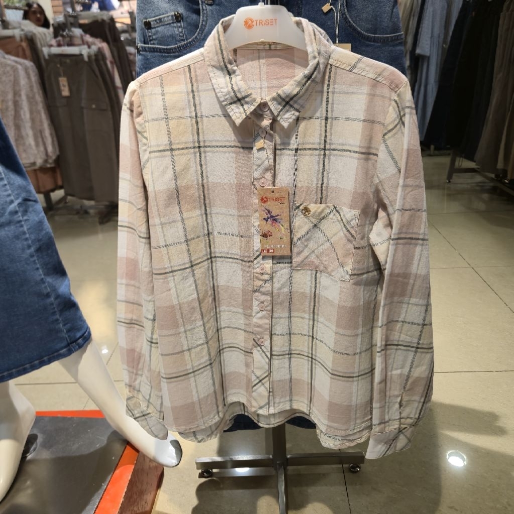 Triset Kemeja Wanita Motif Kotak-Kota Super Cute S-Xl