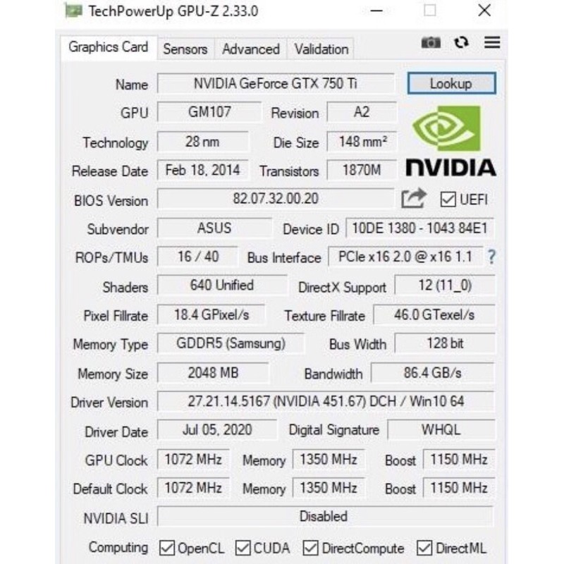 Vga Gtx 750Ti 2Gb Ddr5 Asus Hemat Daya