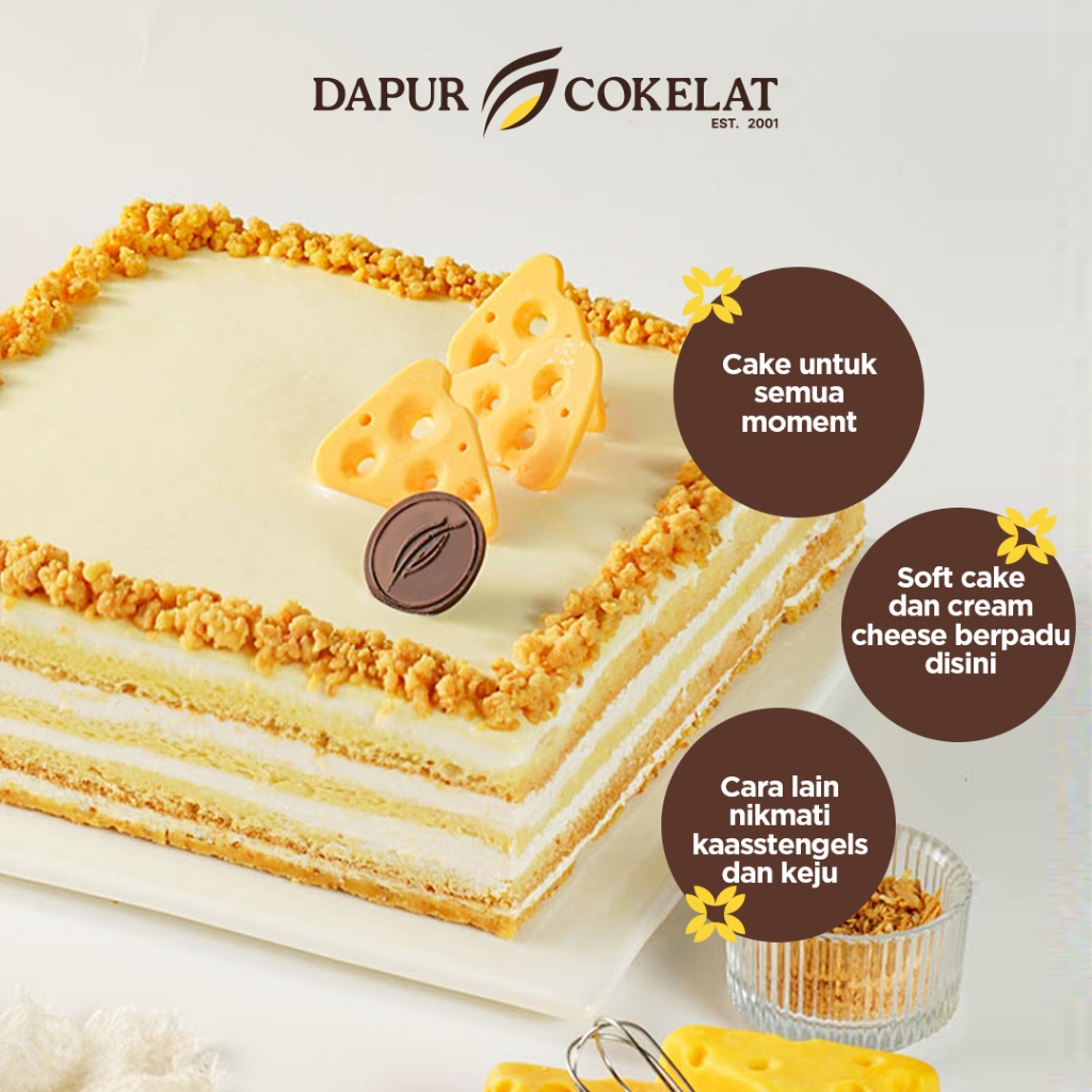 DAPUR COKELAT - Kasstengels Cake 20x20 | Kue Keju Ala Kaasstengels yang Lembut Berpadu dengan Crumble