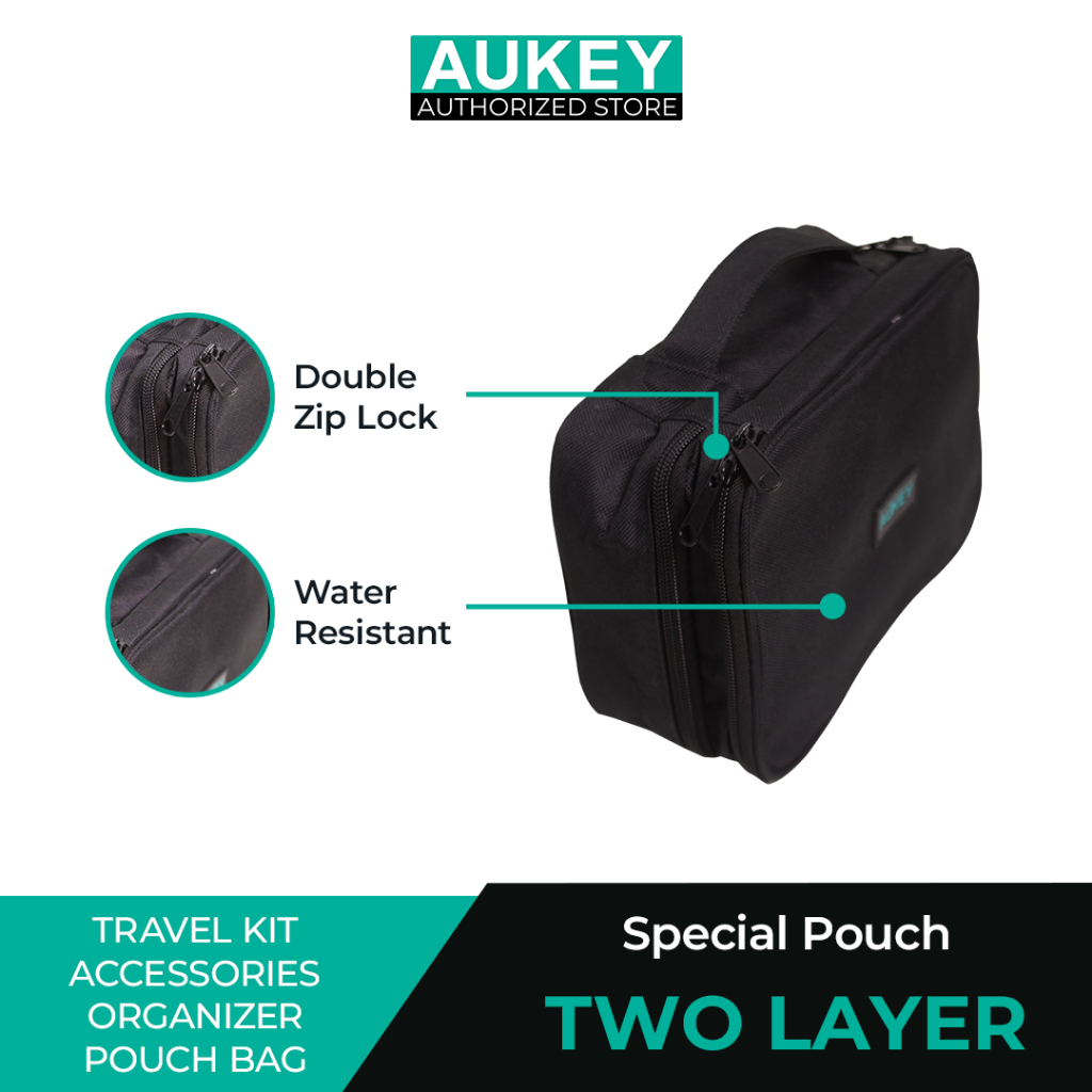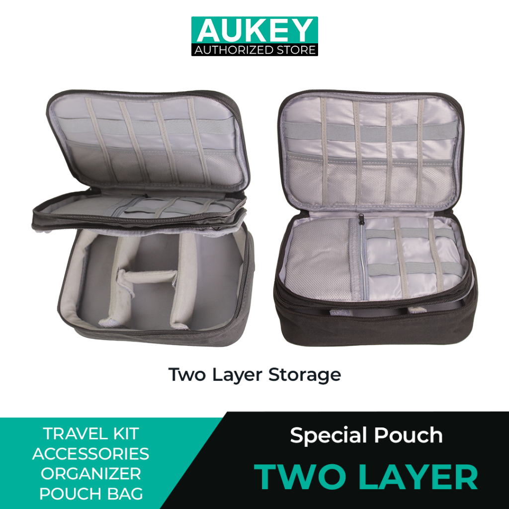 Aukey Pouch Bag Travel Kit Accessories Tas Organizer Gadget 2 Layer Serbaguna Portable - Gift Pouch