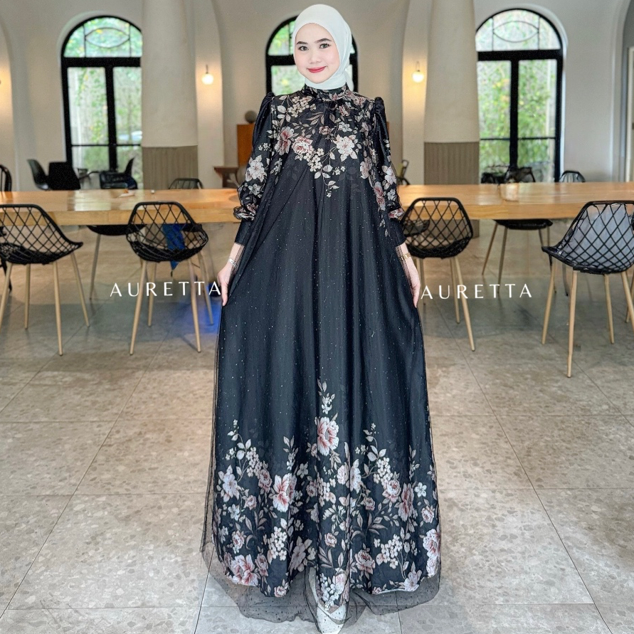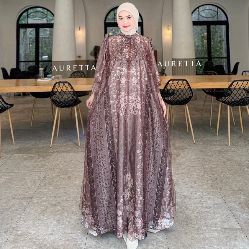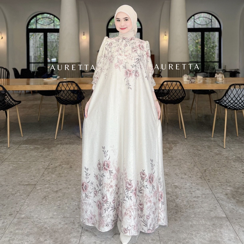 Auretta | Humaira Dress | Raya Collection| Satin Sultan Mix Tile Raindrop | Dress Lebaran Dress Satin Satin Sultan Konda