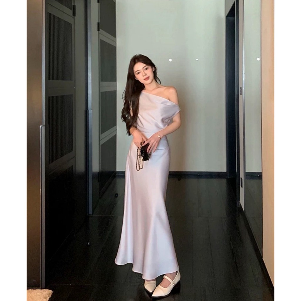 Fg Lynn One Shoulder Drapery Silky Dress / Gaun Silk Glamor Elegan Pesta D12052