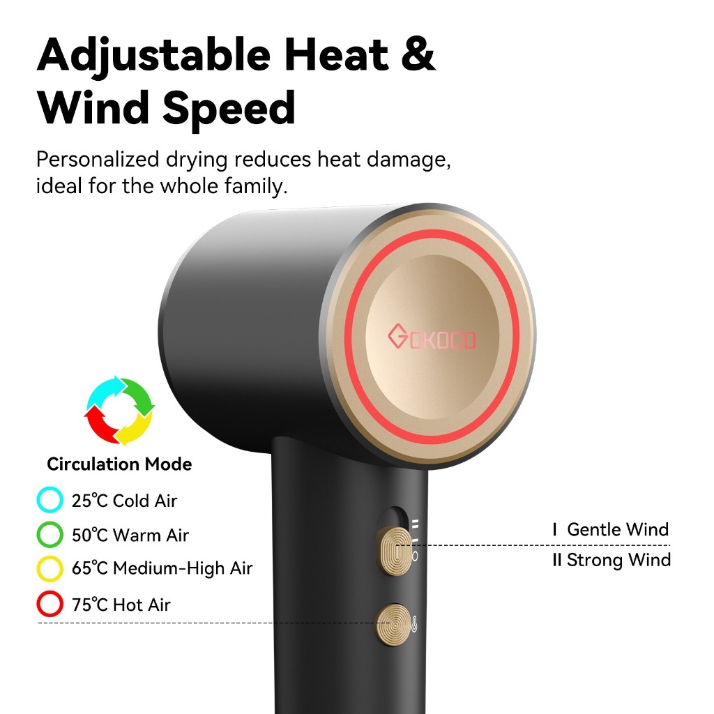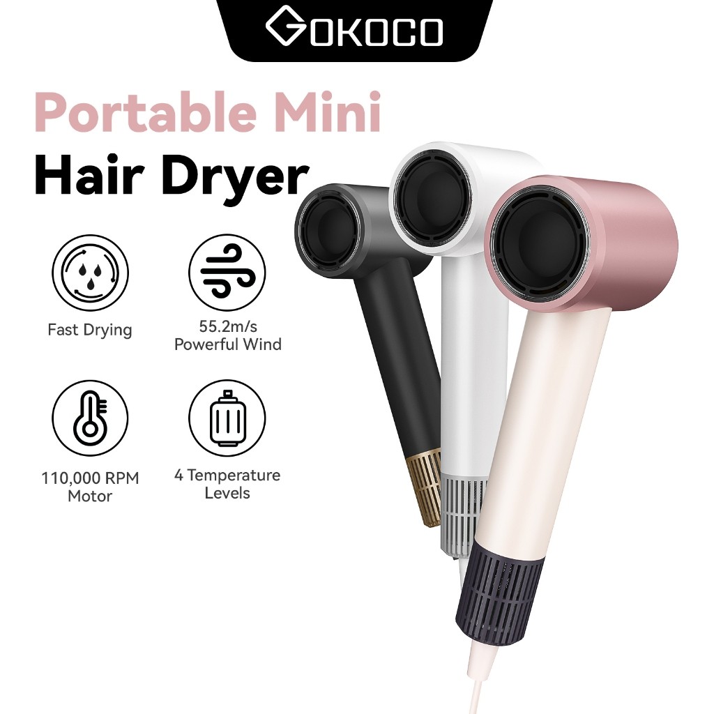Gokoco Mini High Speed Hair Dryer 1,52 Miliar Negative Ion Quick Dry 110,000 Rpm Portable Hair Dryer