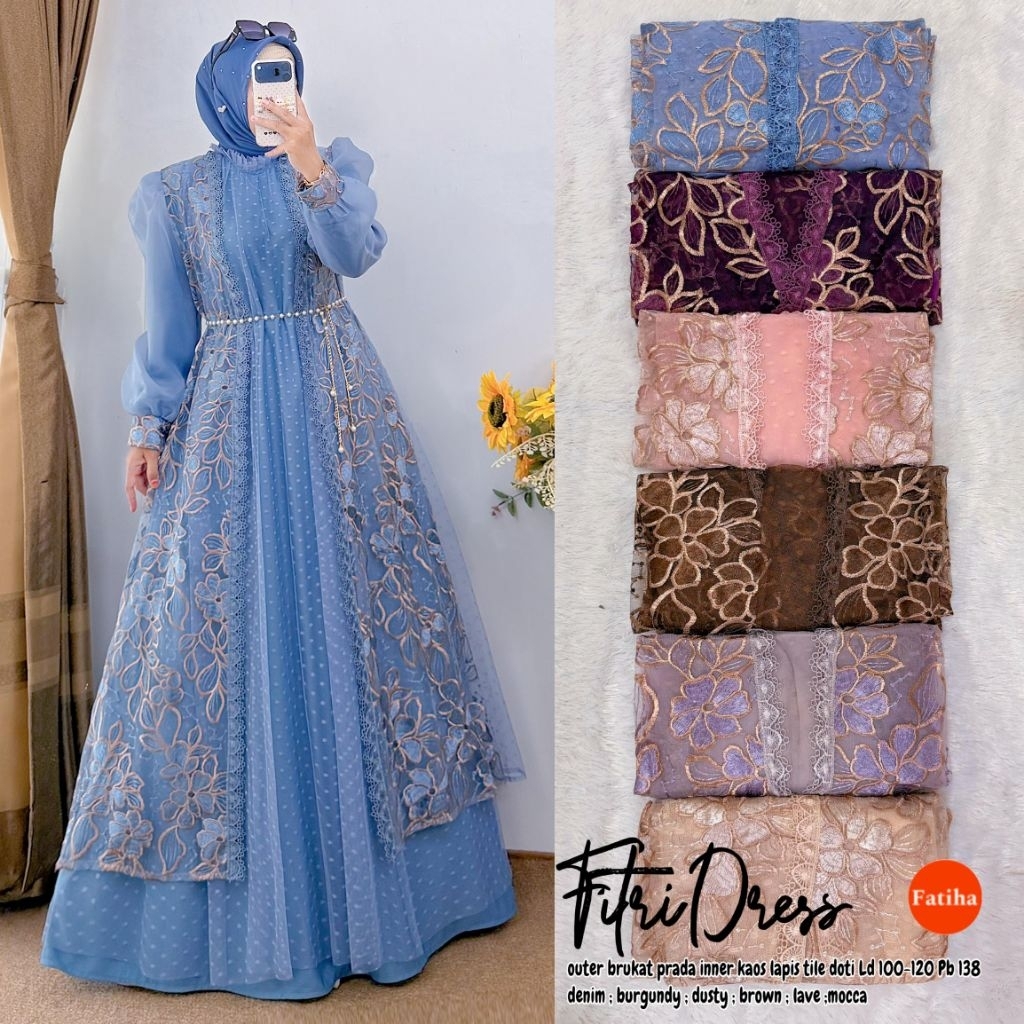 Fitri Dress Brukat Prada Original Fatiha Gamis Kondangan Kekinian