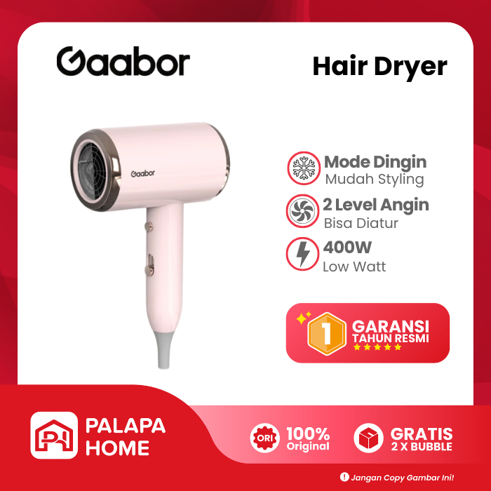 Gaabor Hair Dryer Profesional Low Watt 400W | Pengering Rambut Blu-Ray 2 Kecepatan + Angin Dingin
