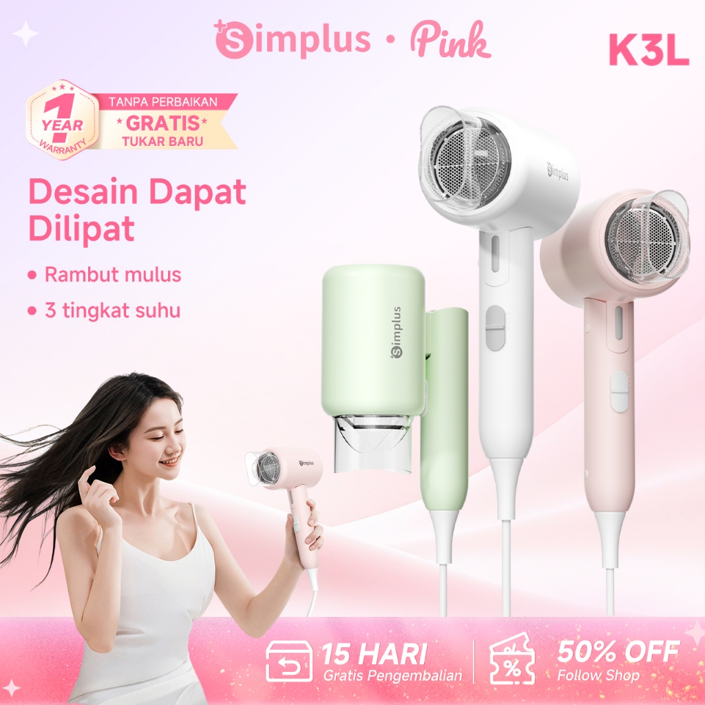 Simpluspink Mini Hair Dryer Low Watt Profesional Pengering Rambut Blower Ion Negatif Foldable Dapat