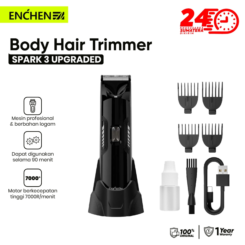 Enchen Spark 3 Body Trimmer Professional Hair Clipper Alat Cukur Rambut Ipx7 Waterproof