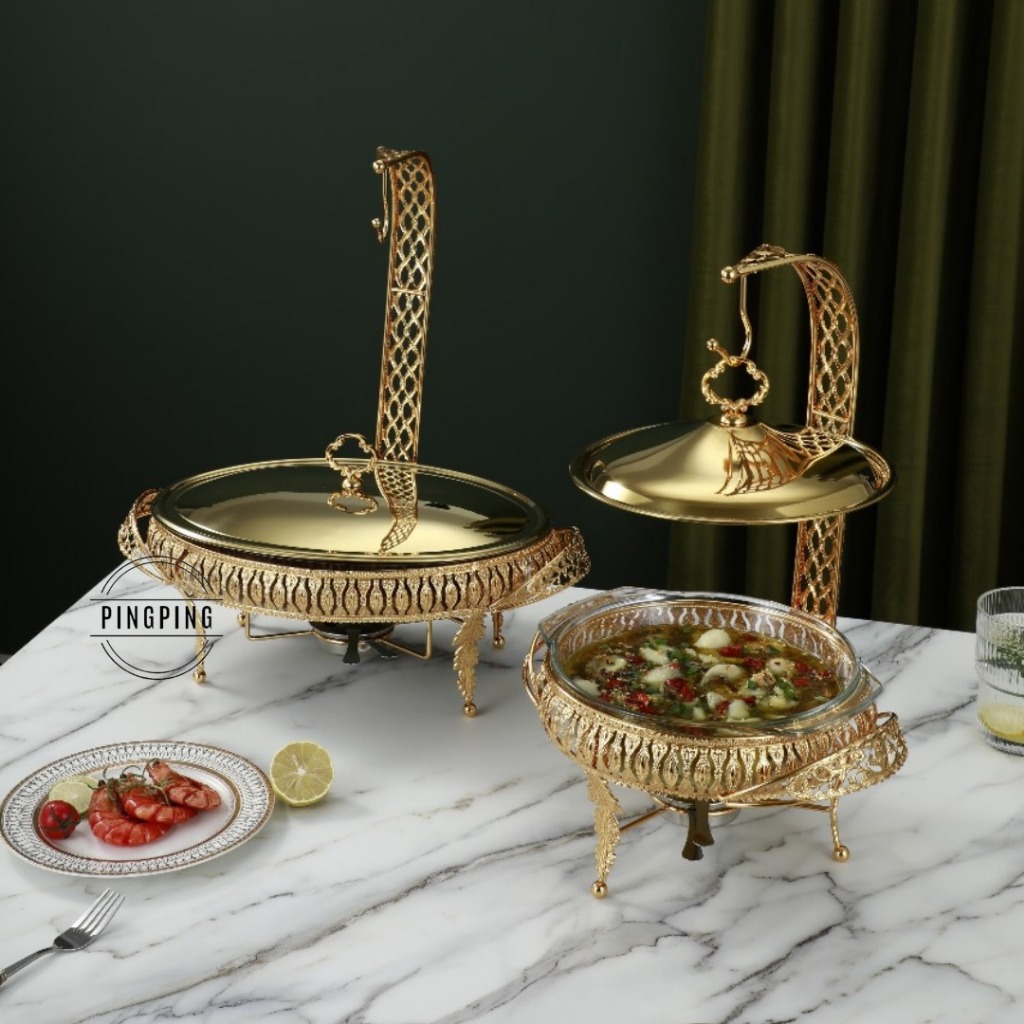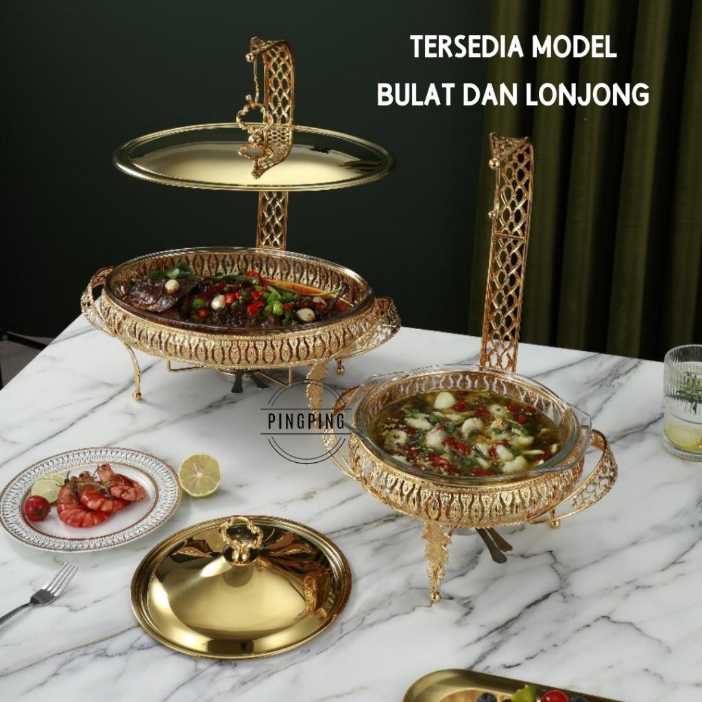 Food Warmer Wadah Kaca Tebal Gold / Food Warmer Wadah/Baki Kaca Tebal Gold/ Food Warmer Perasmanan Pernikahan Mewah / Fo