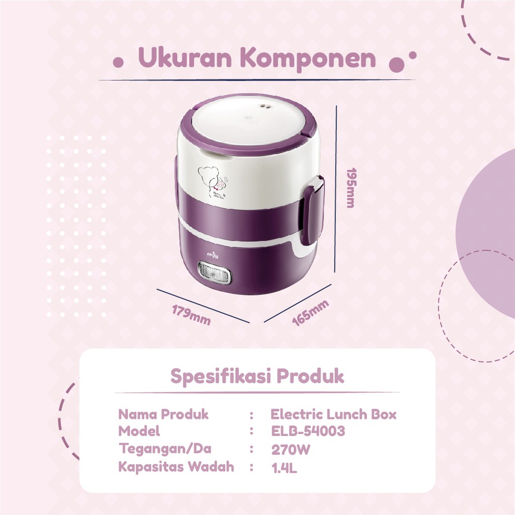 Emily Electric Cooker Box 1.4L | Kotak Bekal | Penanak Nasi | Pemanas Makanan | Kukusan Serbaguna