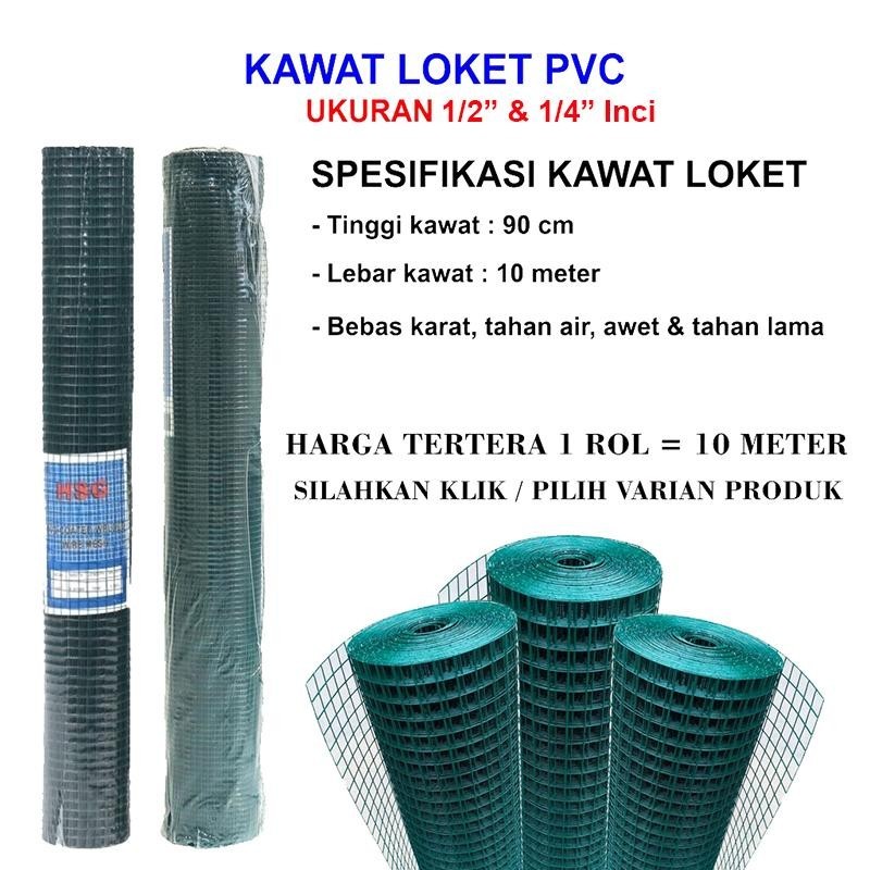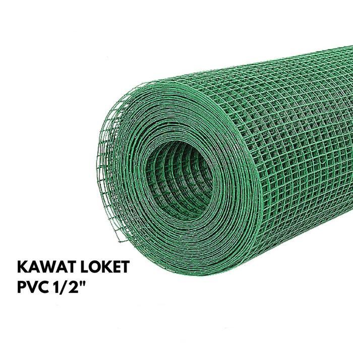 Kawat Loket PVC Hijau 1/2 Inch Per Rol -+10 Meter Lebar 90 cm / Kawat Ram Ayakan Pasir Kandang Tambak Pagar Serbaguna 1/2 inch Anti Karat BJA