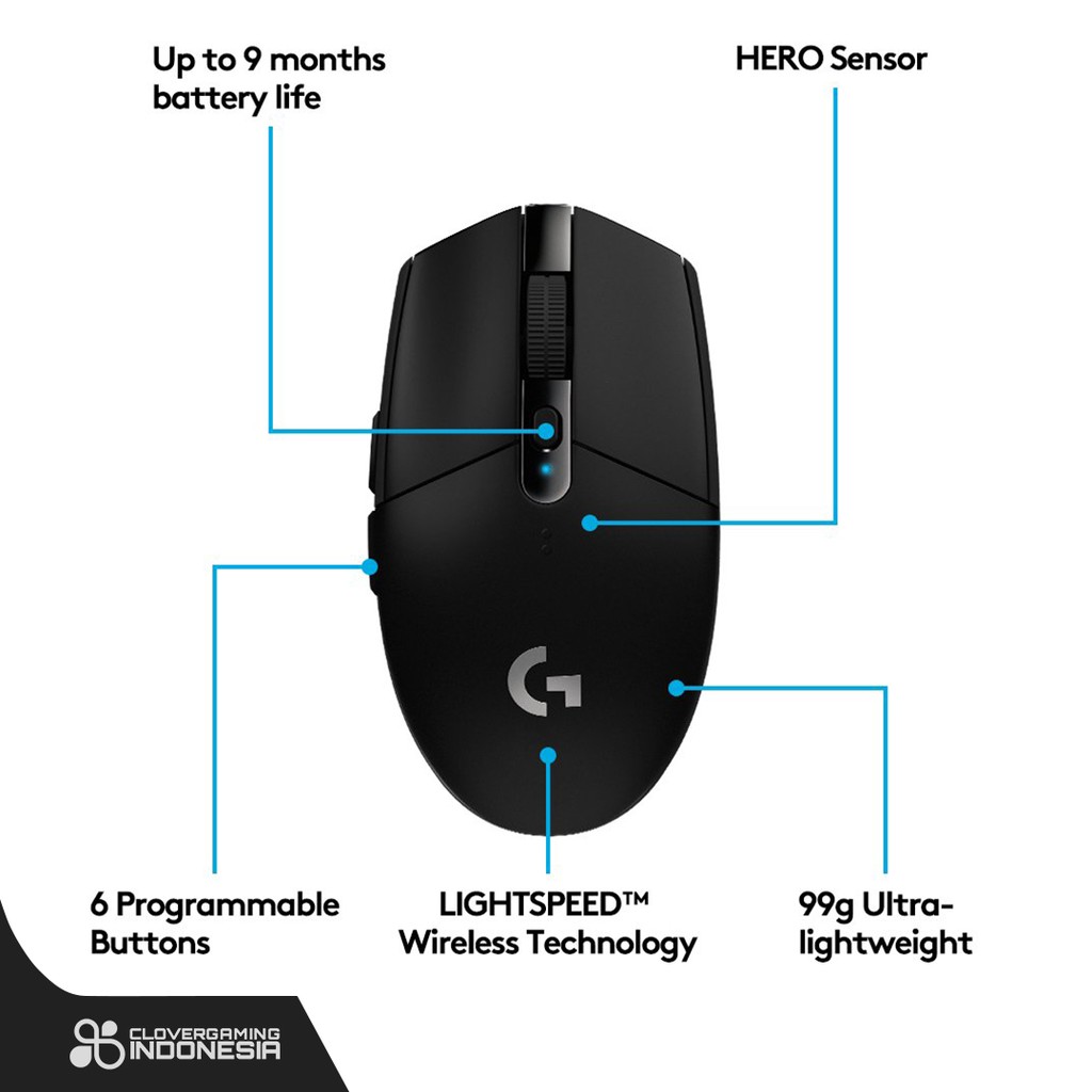 Logitech Mouse G304 Wireless Gaming Mouse G-304 G 304 Black White Hitam Putih