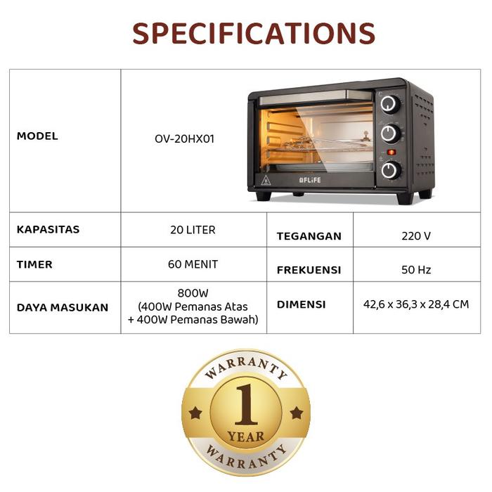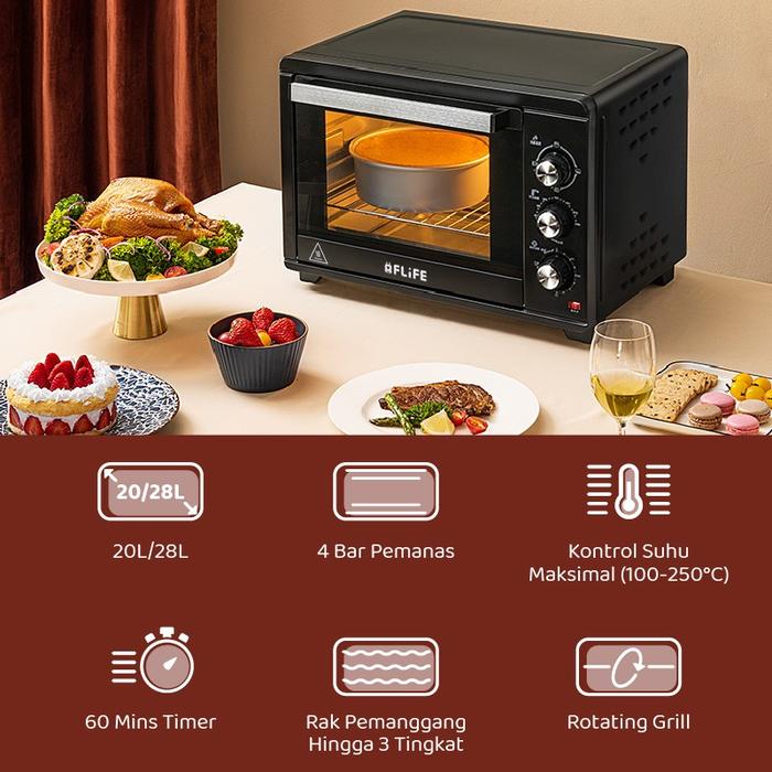 Oven Flife OV-20HX01 Oven Listrik Kapasitas 20 Liter 4 Elemen Panas