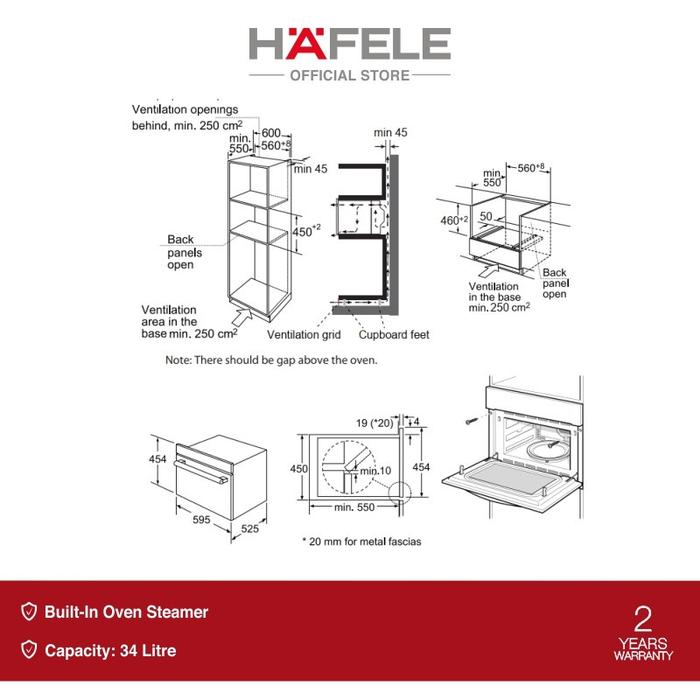 Hafele Emerald Oven Tanam Grill & Steam 34 Liter Touch Screen Hitam - Built-in Electric Oven Black