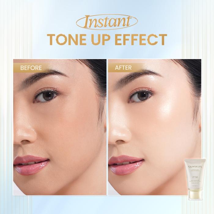 Glowsicha Luminous Glow Tone Up Sunscreen SPF 50 PA+++ Sunscreen Ringan Dengan Niacinamide Tidak