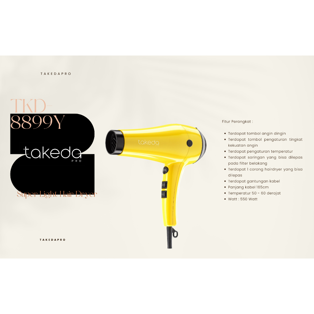 Takedapro Tkd-8899 Super Light Hair Dryer 550W Sale Dus Penyok Dan Lecet