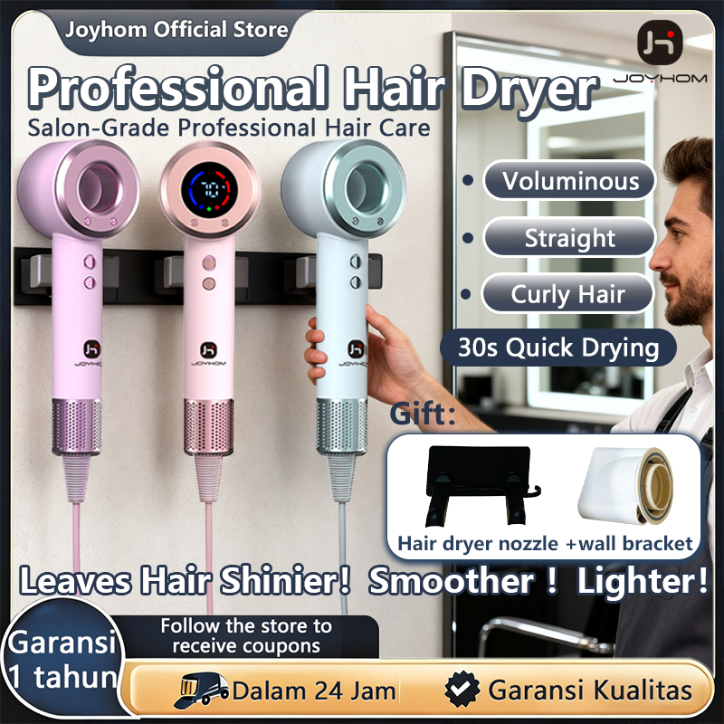 Joyhom Salon-Grade Professional Hair Dryer Ion Negatif Tanpa Daun Reduces Hair Dryness Frizz Voluminous Straight Curly H
