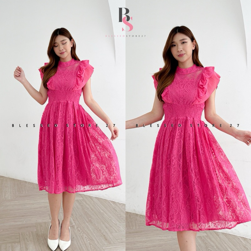 D1269 Jenita Korean Style Brocade Lace Vintage Midi Dress Pesta Premium Simple Elegant Natal Bumil