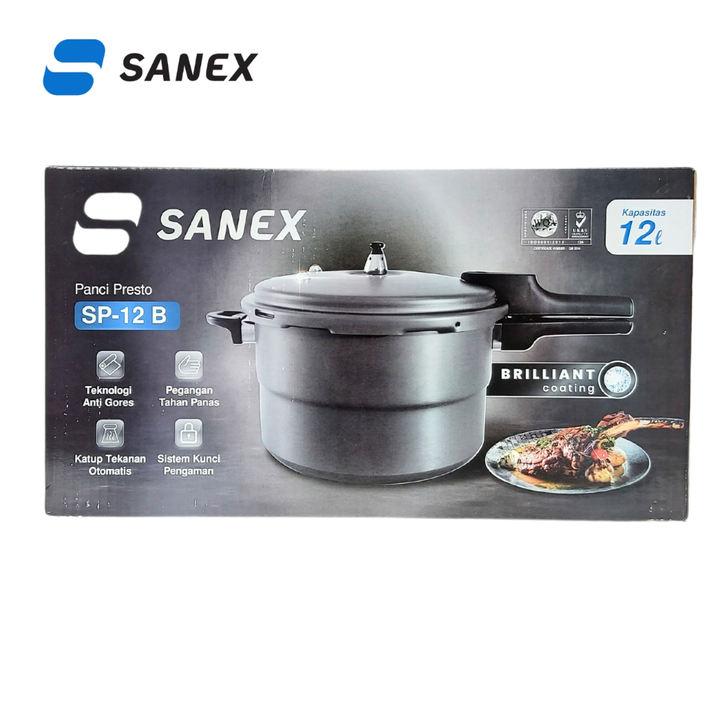 Sanex Panci Presto 12 Liter Sn-12L Plus Kukusan Bahan Titanium Alloy Warna Hitam Brilliant Coating Anti Gores Dan Karat
