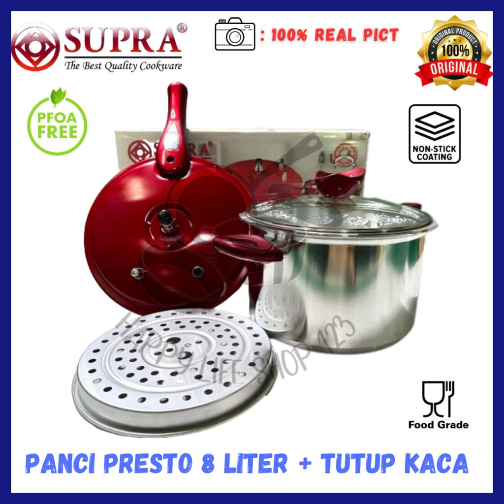 Presto 8 Liter Supra/Panci Presto Supra 8Ltr + Tutup Kaca