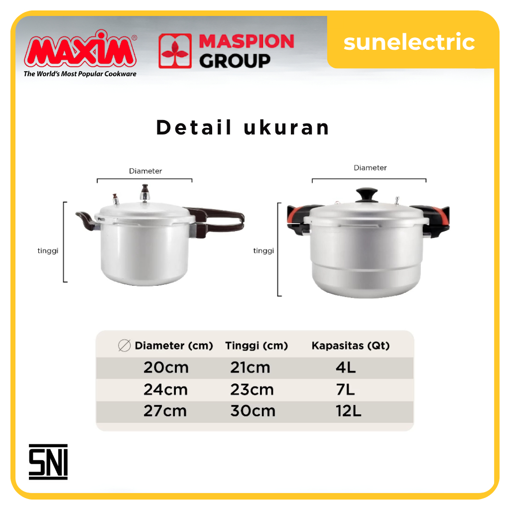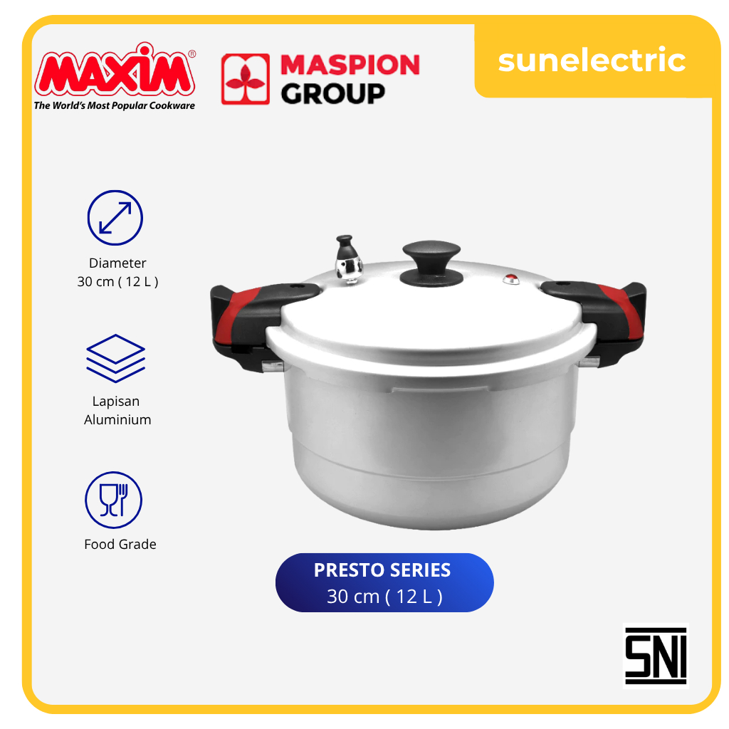 Maxim Presto Pressure Cooker 30 Cm Panci Presto Kapasitas 12 Liter - Silver