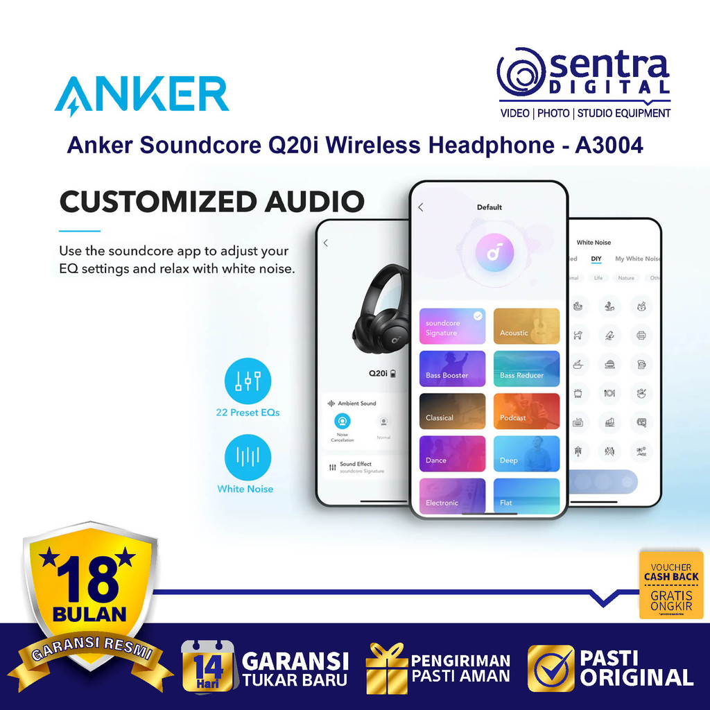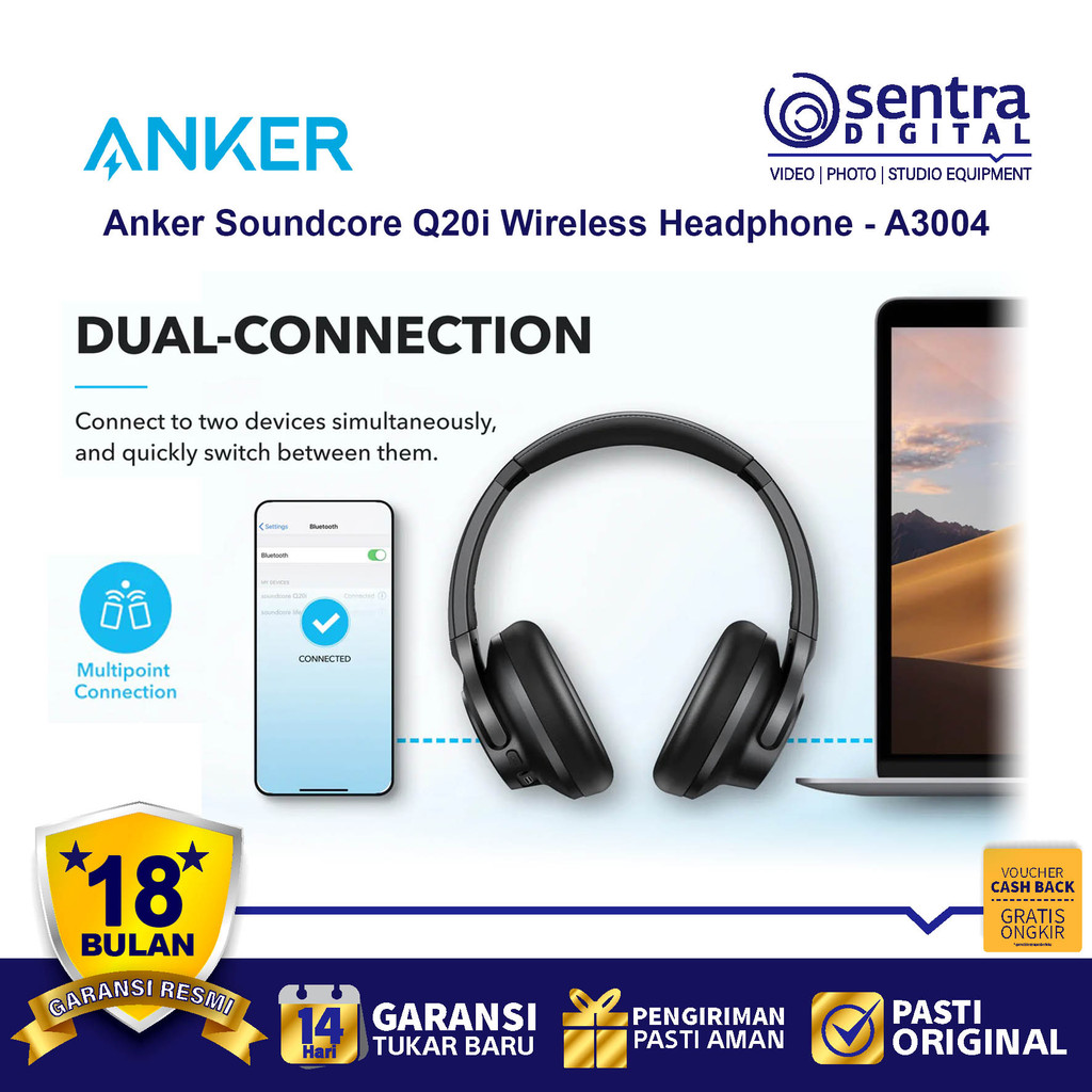 Anker Soundcore Q20I Wireless Noise Cancelling Headphone Extra Bass Headset - A3004
