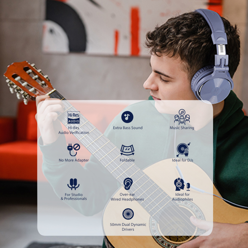 Oneodio Studio Pro 10 Over Ear Wired Dj Headphones - Light Blue