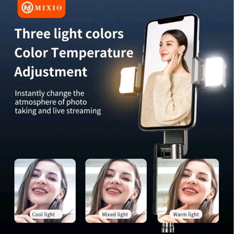 Mixio A100 Auto Face Tracking Tripod 1.5M Gimbal Handphone Stabilizer 360° With Dual Lampu Led