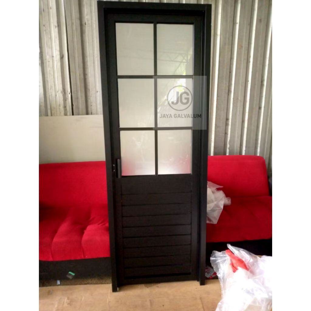 pintu aluminium kaca ornamen aluminium full / pintu minimalis kusen 3 inchi tebal kaca 5mm tebal bahan 0.8mm