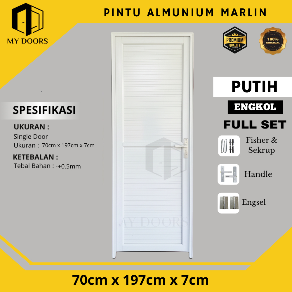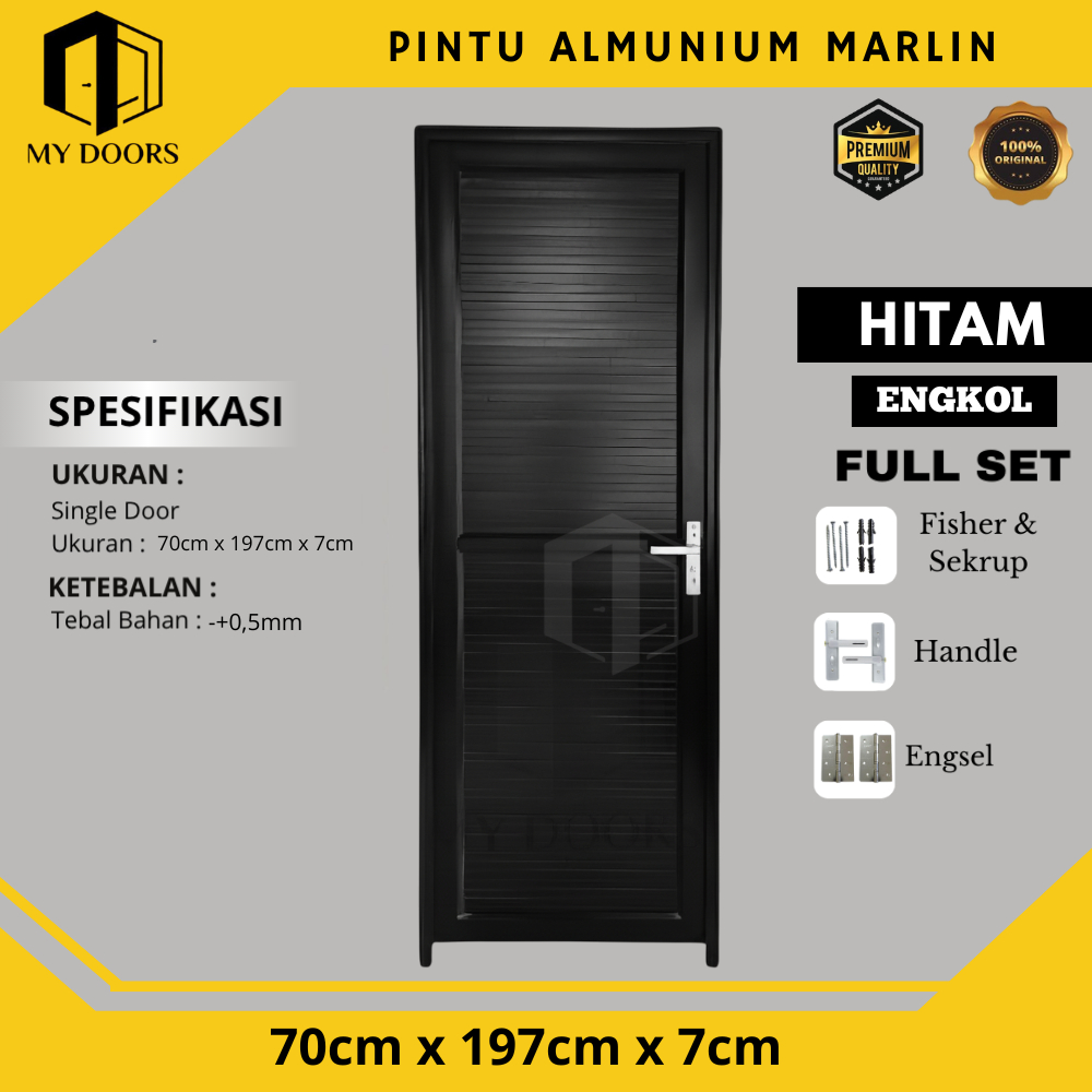 Pintu Aluminium Full Panel 70x195 MARLIN Pintu Kamar Mandi Minimalis Sudah Dengan Kusen Handle & Kunci