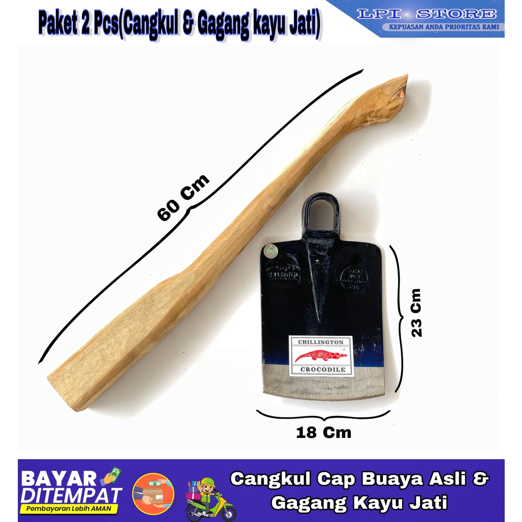 Hemat Cangkul Buaya Asli Dan Gagang - Cangkul Cap Buaya Crocodile Chillington Asli ( Import ) Dijamin Anti Lengket Kuat Super Tajam Gagang Doran Kayu Jati | Paket Cangkul Buaya Dan Gagang