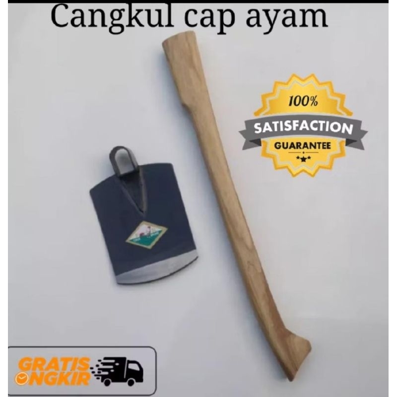 1 set Cangkul serbaguna ukuran sedang -ringan,gagang kayu,Siap pakai (cap ayam)
